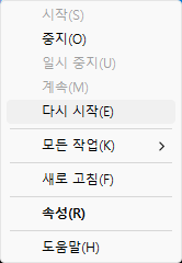 이 서비스를 마우스 오른쪽 버튼으로 클릭하고 시작/다시 시작을 선택합니다.