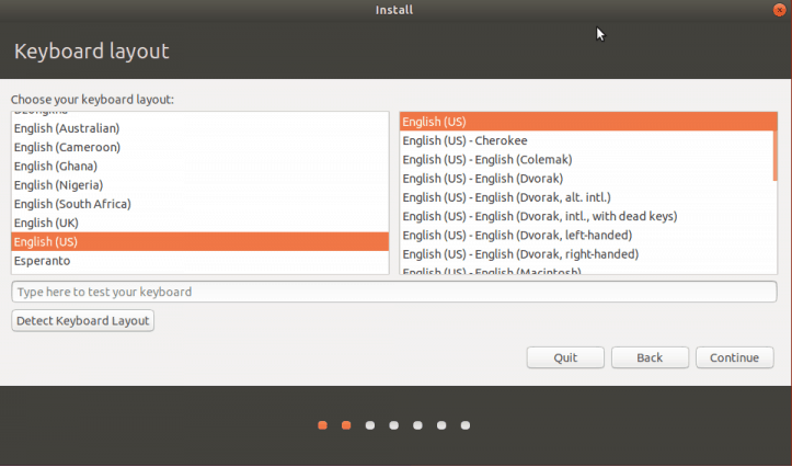 다음 Keyboard layout을 선택한다.