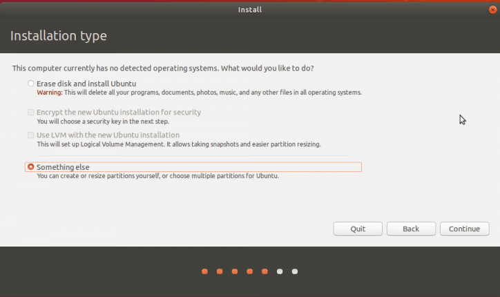 설치 타입은, 가장 쉬운 디스크 지우고 설치하는 첫번쨰 옵션을 선택한다.