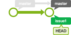 완료되면 다음과 같이 fast forward되었다는 메시지와 함께 master가 issue1위치로 이동하게 됩니다.