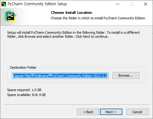 설치 과정은 다음과 같다. PyCharm Community Edition Setup화면에서는 `Next` 를 클릭한다.