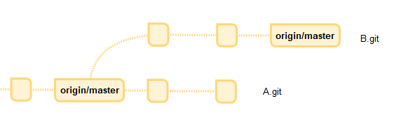 B.git의 브랜치 및 작업 이력을 다시 원격 저장소 A.git에 합쳐야 할 때가 있습니다.