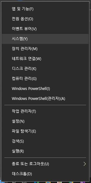 구버전 윈도우를 설치하기 전에, 현재 사용중이거나 필요한 윈도우 버전을 확인하는 방법은, 윈도우 화면 좌측 하단의 윈도우 아이콘에서 우측 마우스를 누른 후, `시스템`을 선택하면 현재 설치된 윈도우 버전을 확인할 수 있습니다.