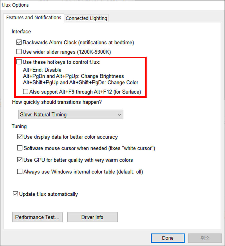 f.lux 프로그램은 제가 오랫동안 가장 애용하는 프로그램으로,