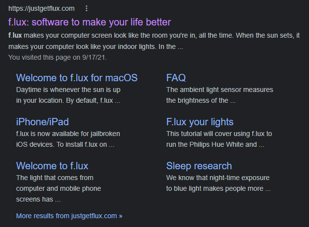 구글에서 f.lux 를 검색해서, 가장 처음 나오는 f.lux홈페이지에 접속하거나, 아래 URL로 들어갑니다.
