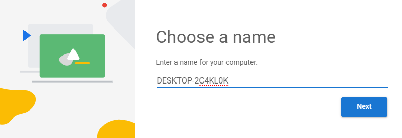 본인이 원하는 자신의 컴퓨터 이름을 입력하고, `Next` 버튼을 누릅니다.
