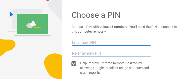 Choose a PIN에서는 자신의 컴퓨터에 연결할 때 사용하고자하는 암호를 설정합니다.