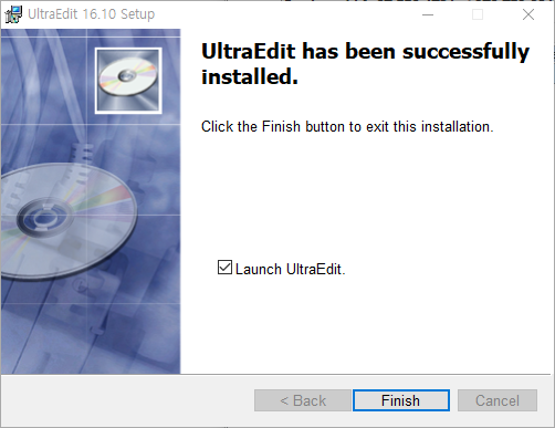 설치 완료후에는 `[v] Launch UltraEdit`를 선택하고, `Finish`를 누릅니다.